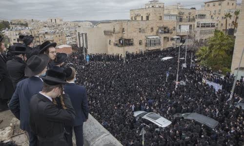 Thousands of people attend the funeral of cleric Meshulam Soloveitchik in Jerusalem, Israel, January 31 Photo: AP.