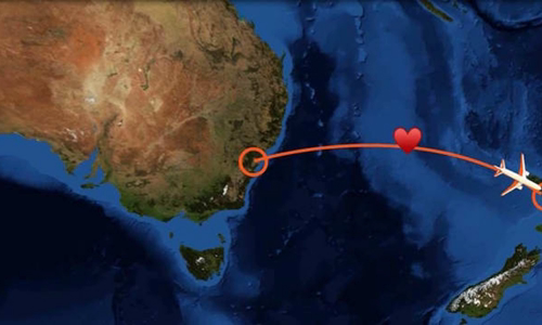 The New Zealand bride and groom are married in the presence of passengers when the plane arrives at the location between the two countries.